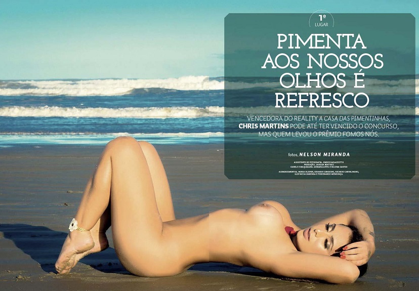 Chris Martins é uma linda gata paulista de 24 anos que ficou em primeiro lugar no Reality A Casa das Pimentinhas, promovido pela própria revista e apresentado pela bela Núbia Óliver.
